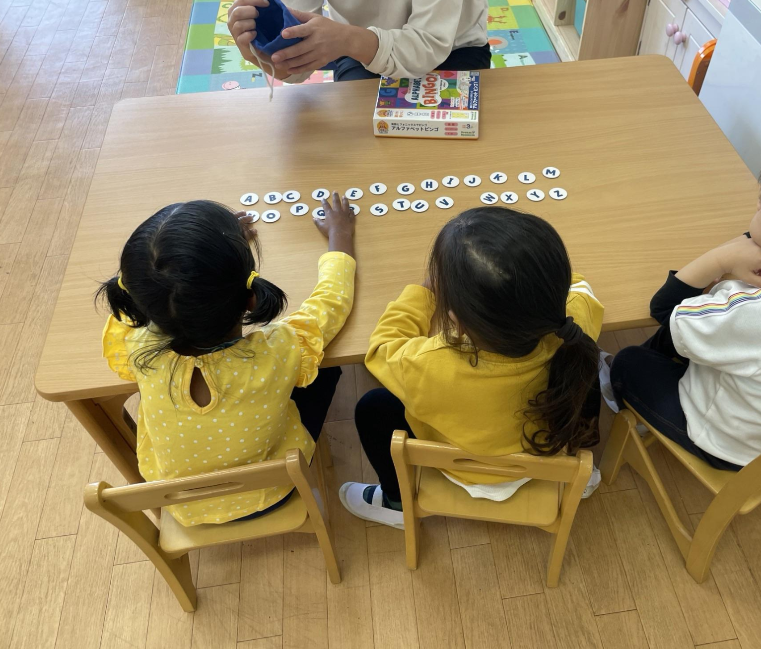 みんなが揃うまで、自分の選んだおもちゃで遊んだり、本を読んだりして過ごします。