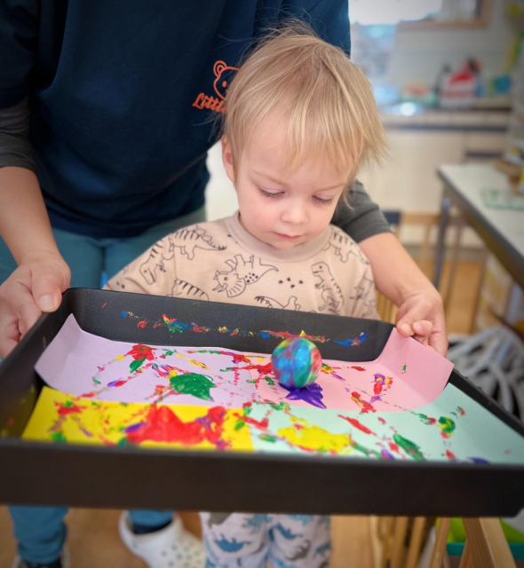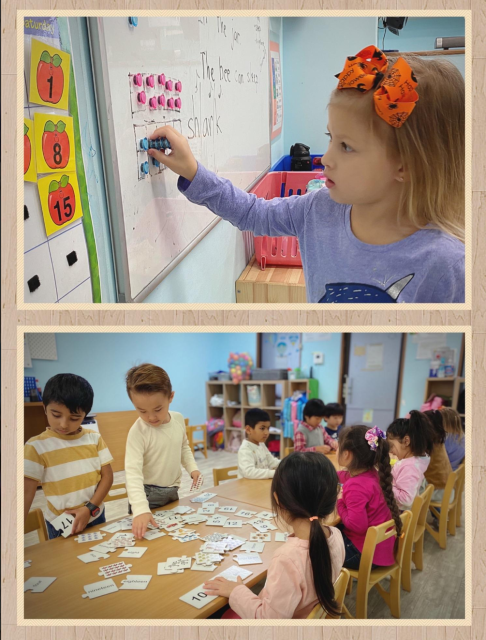 毎日のレッスンは、その週のテーマをもとに、フォニックス(言葉、発音)、算数(数字、図形)、科学(実験)などを楽しく学びます。