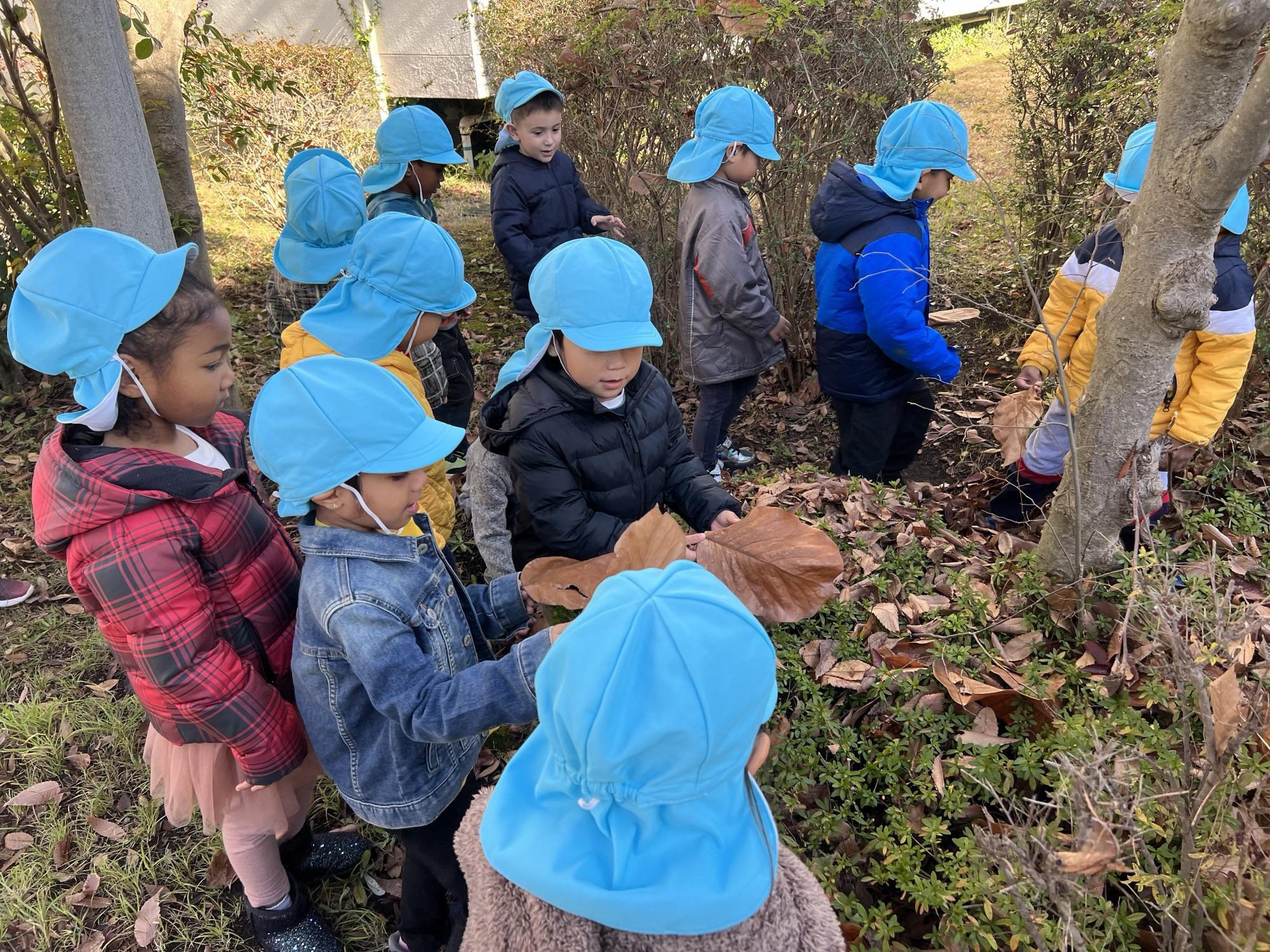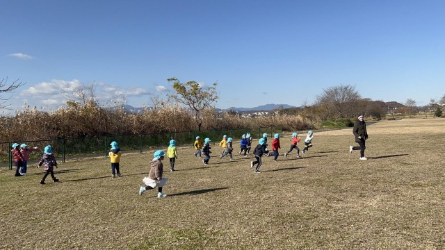 天気が良い日は、周辺の公園で遊びます。自然豊かな環境から、季節による自然の変化を学びます。